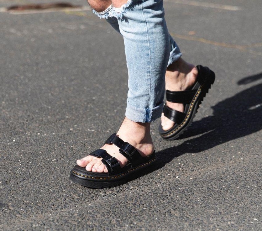 With a sturdy, lightweight ripple sole, the new Myles sandal is an easy slip-on style built for all-day comfort, with two thick adjustable buckle straps in soft but hardwearing leather. Even better: this is a Goodyear-welted sandal, so it's super-durable-no matter what the day hands you. **This sandal tends to have a wider fit so we recommend going a size down.**