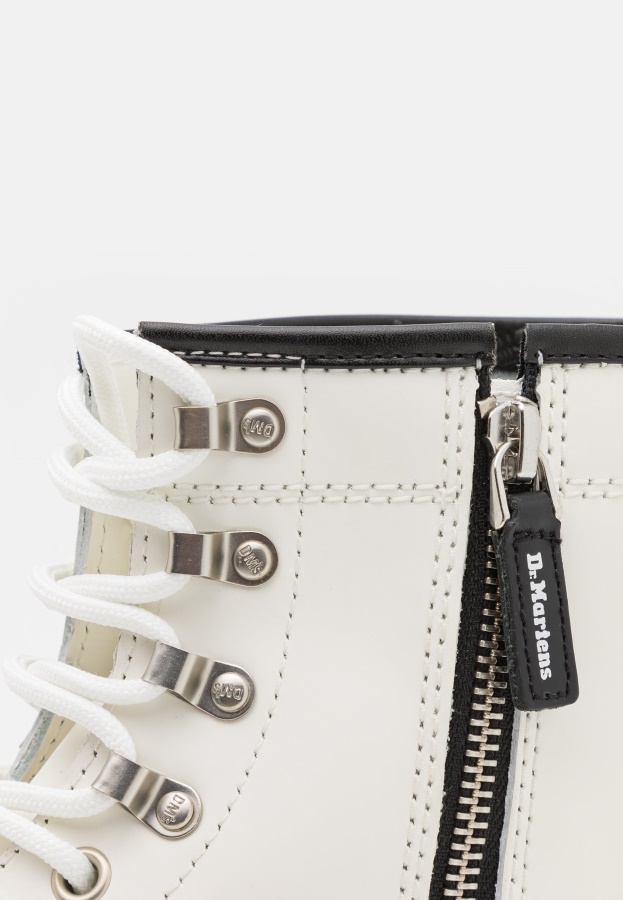 White Smooth Dr.Martens 1460 Zipped Lace Up Ankle Boots