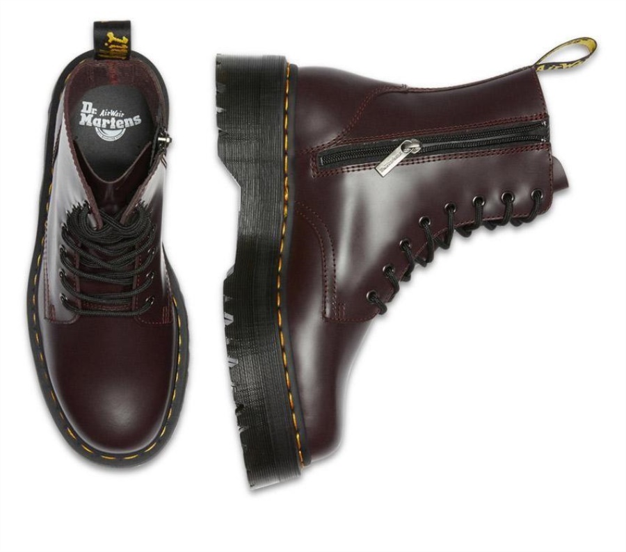 Our Jadon boot returns in a revived brand colour, burgundy - evolving our headlining silhouette while shining a spotlight on our history. The empowering Jadon 8-eye boot sits on our stacked 1.85 Quad Retro platform sole and is built from our classic Smooth leather.