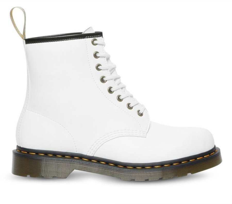 The DM's Original boot re-engineered in our brand new vegan friendly Kemble PU material. Monochrome laces match a smooth matte finish with contrast trim. Standing on an air-cushioned sole with our unmistakable yellow stitching and scripted heel hoop. Zero leather. 100% attitude.