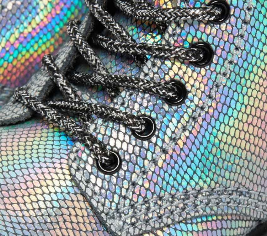 Built for the untamable rebels. Small size doesn't have to lack attitude. Built from attention-grabbing Iridescent Reptile material. Strong enough to take whatever they throw at it. Finished with our classic yellow stitching and a tonal AirWair heel loop. For kids that live out loud.