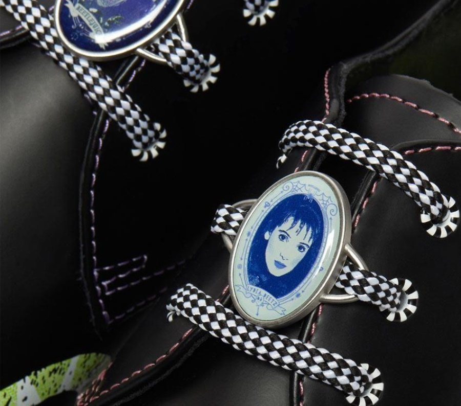 Cult classics that stand the test of time. Dr. Martens x Warner Bros. Studio Collection pays tribute to the subcultural cinematic icons who owe their status to the rebels who adopted them. Directed by Tim Burton, 1988's Beetlejuice ripped a hole in the cinema screen and stormed into the minds and wardrobes of generations of rebels. Strange and unusual and impossible to ignore. This new version of our 1461 shoe is fitted with enamel lace jewels of Beetlejuice and Lydia Deetz and is decked out with a Betelgeuse snake print.
