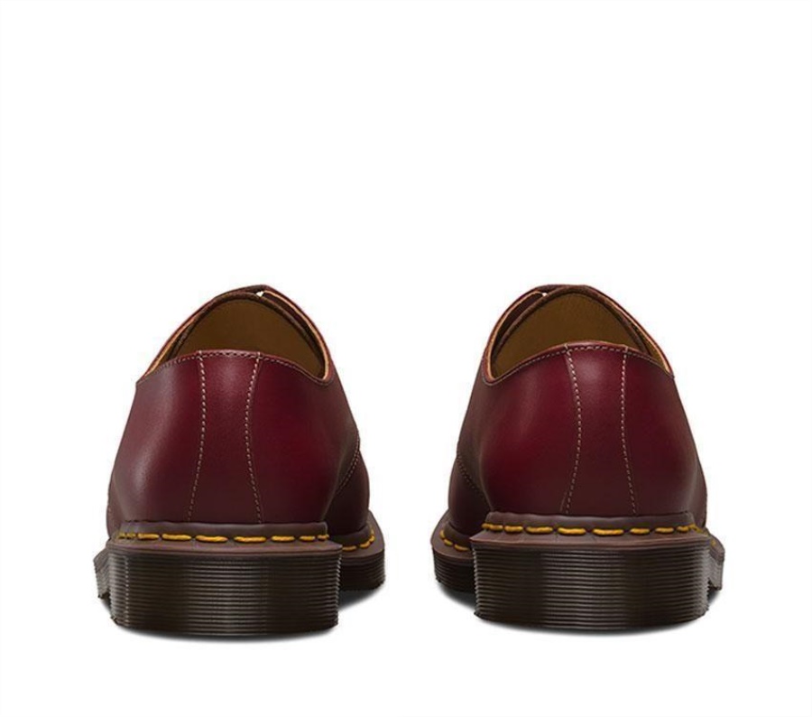 Our Vintage 1461 3-eye shoe in Quilon Leather is a re-issue of the original Dr. Martens classic leather. Our Vintage range is handcrafted in the original factory (Wollaston, Northamptonshire, England) by cobblers using the original construction technique. Small visible indentations are left on the welt by the original stitching machine. Quilon Leather is only used on our Made in England Vintage styles. The base of Quilon Leather is a classic brown color contrasting the grain color, another feature known with vintage leather. As the leather ages and wears, scuff marks and flex points start to reveal the base color, which creates an aged and worn appearance.Offered in a unisex size range to include both men's and women's sizes. Made with Goodyear welt, the upper and sole are heat-sealed and sewn together, not merely glued, like many footwear constructions. This, together with our Z welt-stitch and heat-sealing process, makes it unique. Dr. Martens have an air-cushioned sole, are oil and fat resistant and offer good abrasion and slip resistance.