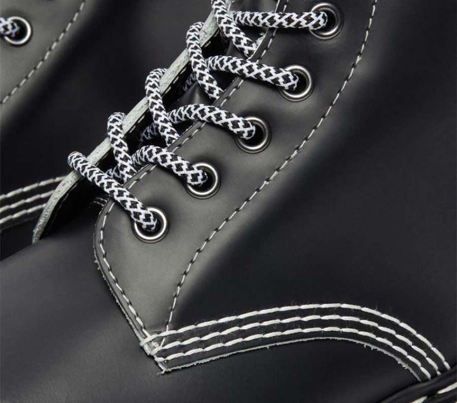 Loud with heritage. Our 1461 Double Stitch boot is a celebration of a six-decades-strong design. Built from a tough Smooth Slice leather and detailed with contrast white double-stitching - this hard-hitting boot is built to stand out in a crowd. Stacked on a 1.3 Bex, a more rugged and hardwearing edition of our classic DMS sole.