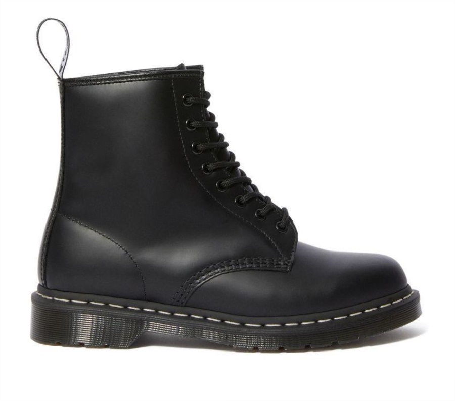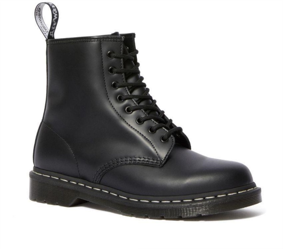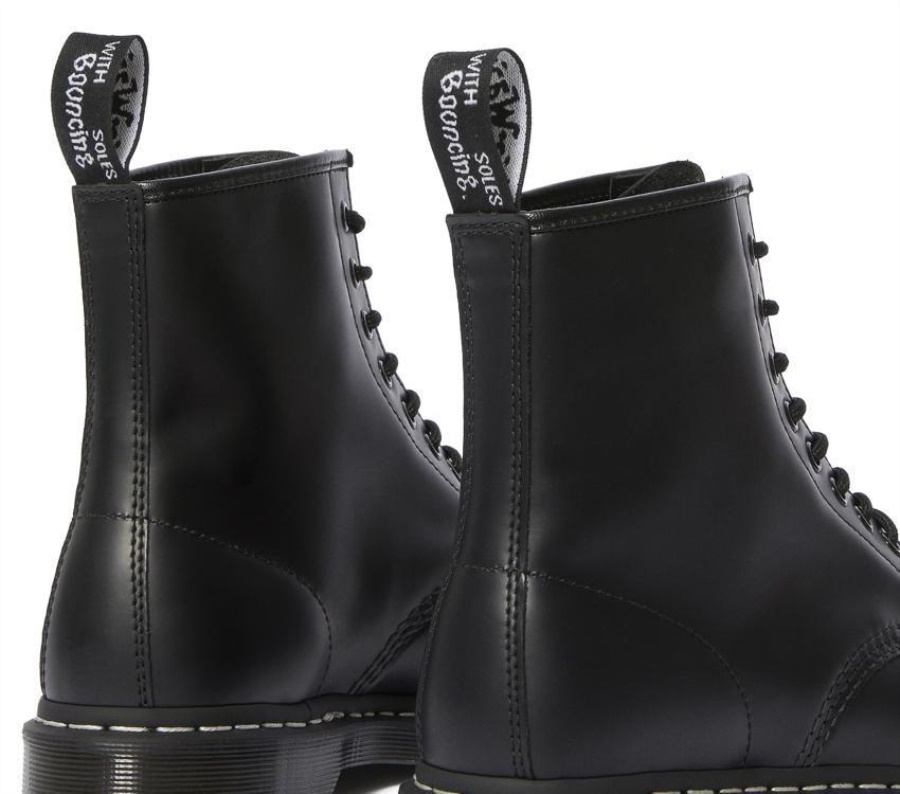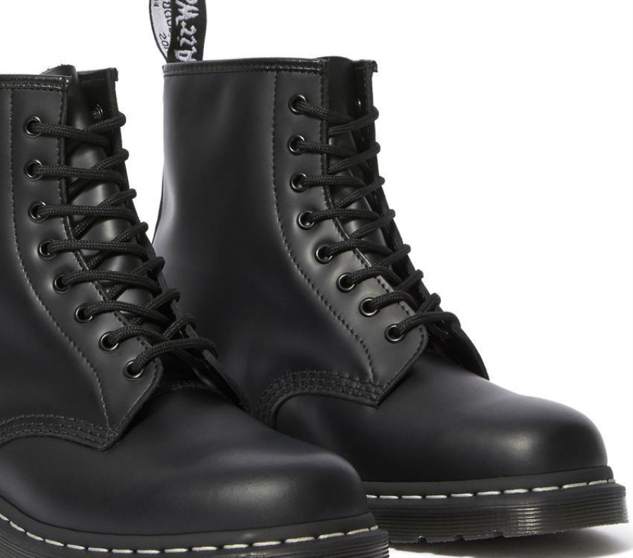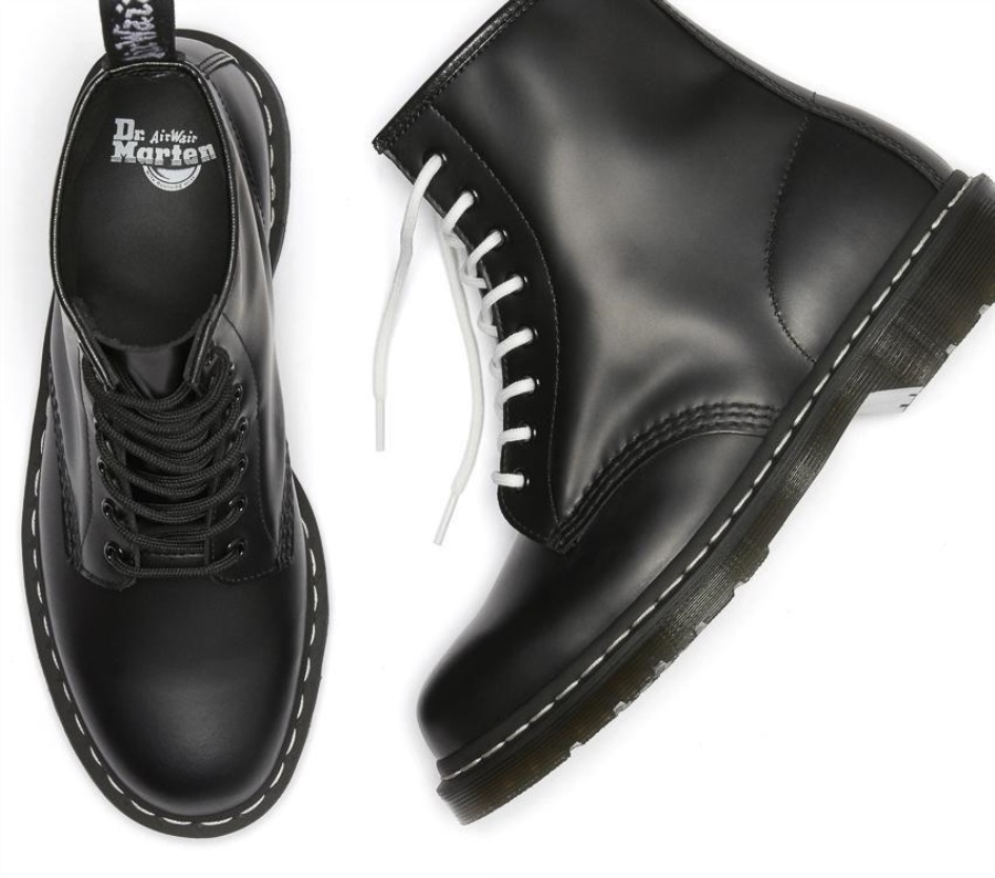 This version of the 1460 has the recognizable DNA looks like the: 8 eyes, classic Dr. Martens Smooth leather, grooved sides, a heel-loop, and a comfortable, air-cushioned sole but now has white stitching. To match these boots come with two sets of laces, black and white. Built to last, this unisex boot is made using one of the finest methods of construction: the Goodyear Welt-which means the upper and sole are sewn together in our heat-sealed z-welt stitch. The boot sits on our iconic AirWair? sole, which is oil and fat resistant with good abrasion and slip resistance, and is made with Smooth, a lightly textured, highly durable leather with a soft sheen. Use our Wonder Balsam to keep your boots clean, protect the leather, and keep it soft and supple. **This boot tends to have a wider fit so we recommend going a size down.**