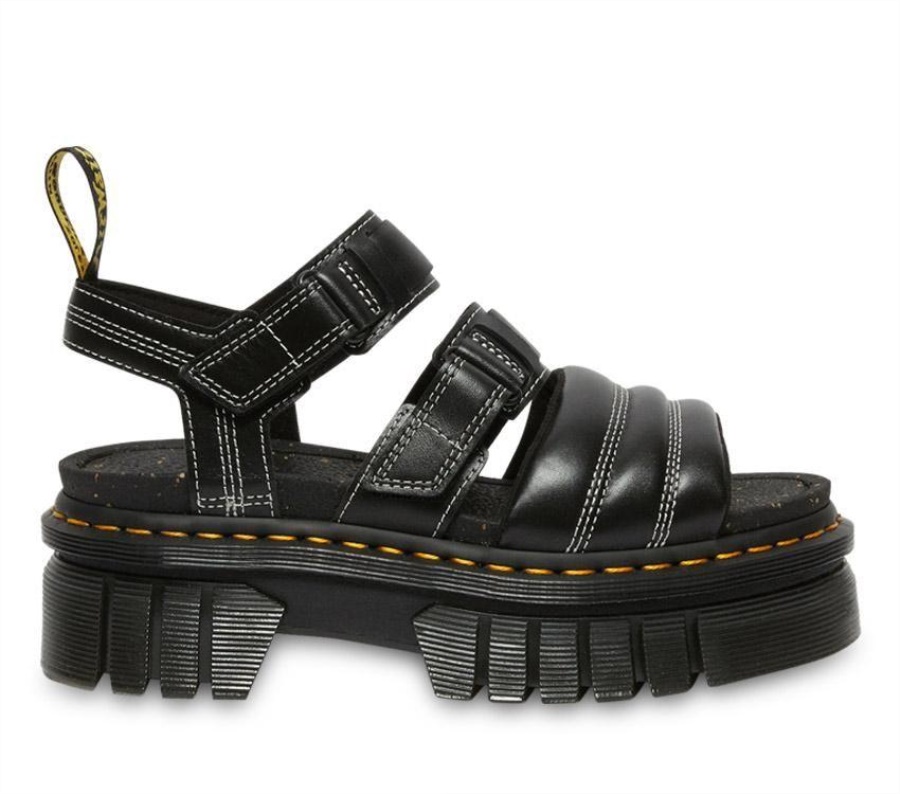 Next generation sandals. The Ricki Hardware is set on our two-part Quad Neoteric platform - a radical rework of our renowned Quad sole, with a two-part lightweight construction, deep cleats and an exaggerated side profile. Made from an easy wearing Nappa Lux leather, the sandals are loaded with Nickel hardware detailing alongside our signature black and yellow heel loop and yellow welt stitching. Each pair is fitted with a moulded antimicrobial cork footbed to keep feet fresh all summer long.Our SoftWair memory foam footbed ensures comfort from the first stepNappa Lux is a classic nappa leather-soft and smooth to the touchOur Goodyear-welted lines are heat-sealed at 700Celsius and reinforced with our signature welt stitchPlatform height is 1.8"
