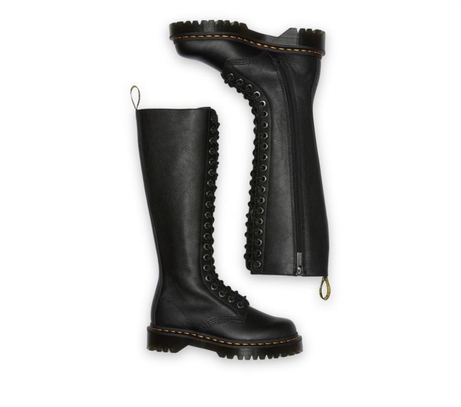 Tall. Tough. Towering. Make yourself heard in our hard-hitting 1B60 boot. Set on our double-height Bex sole for even more height and attitude, the knee-high boots have a standout 20-eye silhouette. Built for the bold, they're crafted from soft Pisa Nappa leather and finished with an inside zip for easy access as well as our classic yellow welt stitching and heel loop.-Inner ankle zip for easy-on, easy-off access-Pisa is a medium-weight milled nappa leather with a soft tumbled handle and richly pigmented waxy finish-Our Goodyear-welted lines are heat-sealed at 700Celsius and reinforced with our signature welt stitch-Platform height: 1 in; Heel height: 1 3/8 in