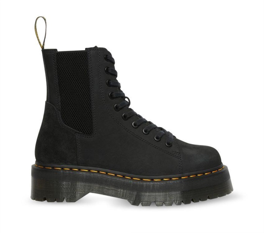 DM's classics. Made to be messed with. A fusion of our Quad 1.85 platform with the Chelsea platform in a radical rework. The lace-to-toe boot punches eyelets deep into the front of the boot. Constructed from rich, smooth Kaya Nubuck leather. Minimal breaking in required. Hit the streets straightaway. An angular gusset and signature heel loop give easy on/off access. The secure yellow welt stitch is fundamental to our DNA.