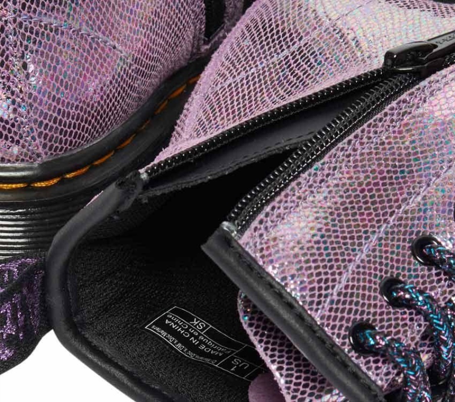 Built for the untamable rebels. Small size doesn't have to lack attitude. Built from attention-grabbing Iridescent Reptile material. Strong enough to take whatever they throw at it. Finished with our classic yellow stitching and a tonal AirWair heel loop. For kids that live out loud.