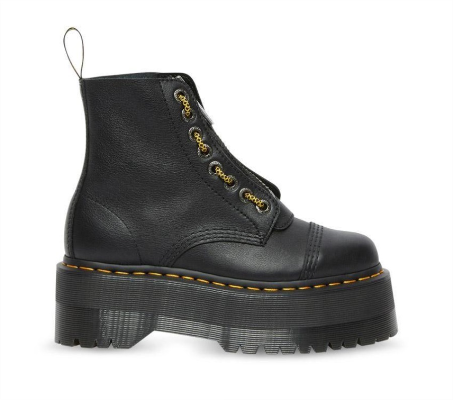 Our highest ever platform. These Sinclair boots are welted on a towering 2.5'' Quad Retro Max sole.Built to make a scene. Crafted from soft Pisa leather to minimise break-in time, the boots are fitted with a removable jungle zip piece that can be unlaced or left on - it's up to you. They're accented with bold yellow laces to match our iconic yellow welt stitch and heel loop. These sky-high platforms aren't for the faint-hearted. Are you up to it?